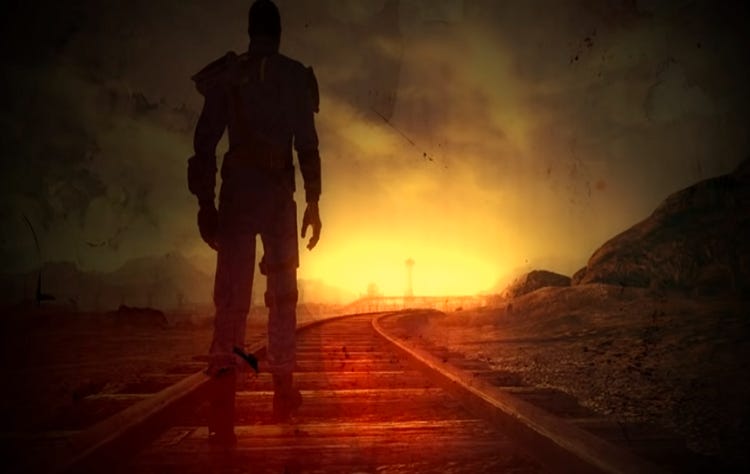 Yet it will be authentic. It will be genuine. It will be sacred. Like the Courier entering the Divide, we venture forth alone, yet not without intention. With trust in the divine, commitment to truth, and passion in our hearts, we begin again. Like the Courier in the Mojave, we do not begin with power, but are shot in the head, wounded by the modern world. We are men among the ruins, picking through the waste for meaning and armed only with choice, the Courier forges a new world by his will to power and seeks the heroic path. The road is long, lonely, and dangerous. Nonetheless, it belongs to us, the vanguard of the new dawn.